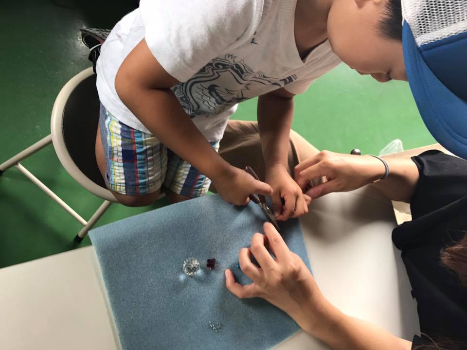 ドイツのガラスカットのボールやスワロフスキーを使って、小さいお子様も頑張ってくれました。