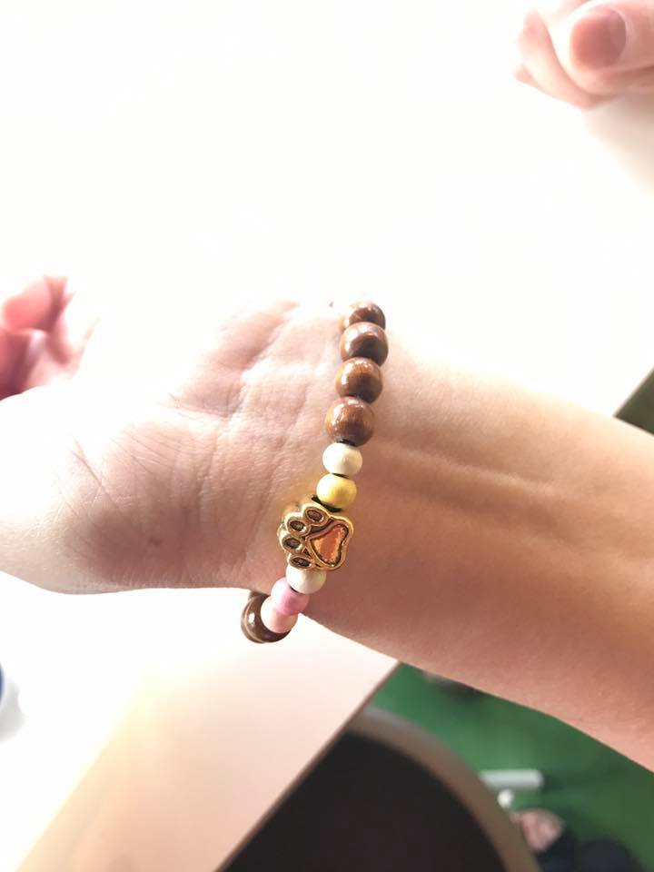 他に、小さいお子さん用に、穴の大きいウッドビーズのブレスレットもあります。